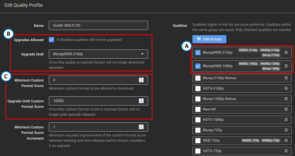 Custom Format Trash ID VOSTFR Profile Score MULTi.VO Profile Score
